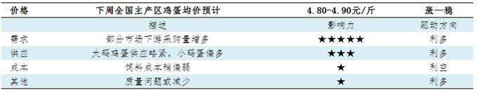 供应方面:近期淘汰鸡出栏量稍有增加,产区大码鸡蛋供应减少,虽小码鸡蛋供应量依然充足,但整体来看,市场余货压力减轻,供应端对蛋价有一定利多影响。