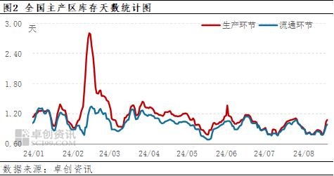 库存:今日生产环节库存在0-1.5天,流通环节库存0-1.5天,库存压力增加。