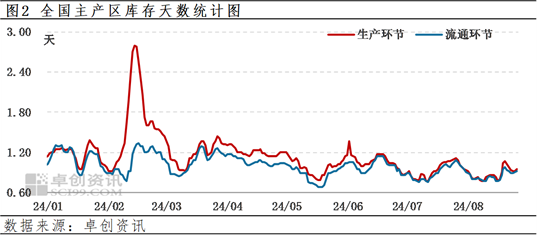库存:今日生产环节库存在0-1.5天,流通环节库存0-1.5天。