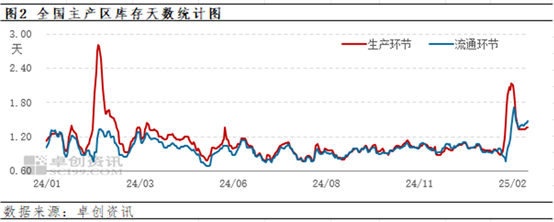 库存:今日生产环节库存均值1.36天,流通环节库存均值1.47天。