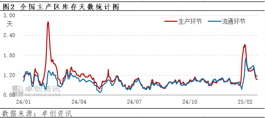 库存:今日生产环节库存均值1.07天,流通环节库存均值1.18天。