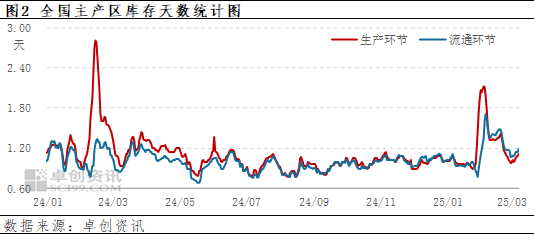 库存:今日全国生产环节平均库存1.11天左右,流通环节库存1.19天左右,走货减慢,库存略有提升。