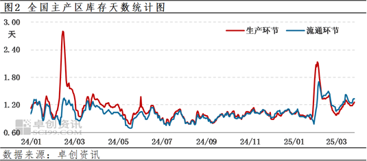 库存:今日全国生产环节平均库存1.26天左右,流通环节库存1.33天左右,流通环节走货偏缓。