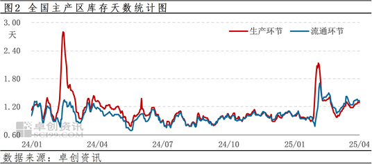 库存:今日全国生产环节平均库存1.29天左右,流通环节库存1.31天左右,各环节维持刚需库存,局部余货压力略减。