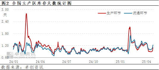 库存:今日全国生产环节平均库存1.10天左右,流通环节库存1.23天左右,走货不快,库存继续提升。