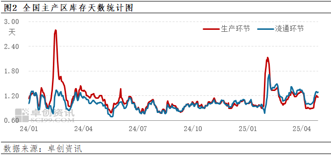 库存:今日全国生产环节平均库存1.17天左右,流通环节库存1.29天左右,各环节积极寻找出货渠道。