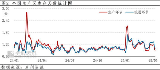 库存:今日全国生产环节平均库存0.92天左右,流通环节库存0.98天左右,各环节维持刚需库存,局部余货压力减少。