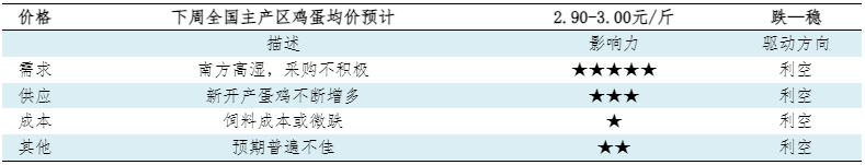 供应方面:新开产蛋鸡继续增多,小鸡蛋供应量较充足,供应压力继续缓慢增大,对价格有利空影响。