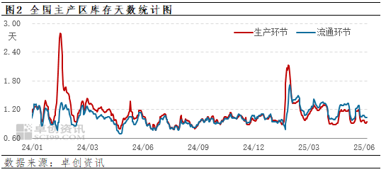 库存:今日生产环节库存均值0.94天,流通环节库存均值1.03天。