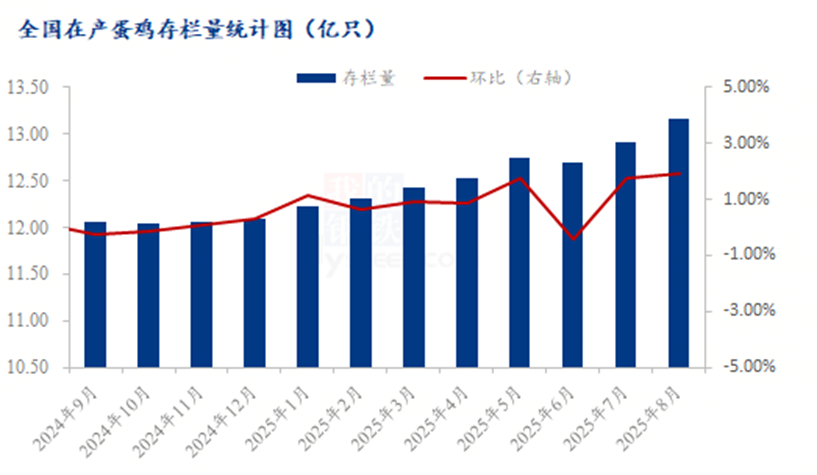蛋鸡存栏量是关键因素,2021年至2024年蛋鸡产业长时间盈利,各方持续加大投资,导致2025年在产蛋鸡存栏量处于高位,如8月蛋鸡存栏量仍处于历史高位,供应充足对价格形成压制。鸡蛋需求有明显的季节性,7至9月通常是销售旺季,但2025年旺季需求不及预期,8月餐饮渠道鸡蛋需求同比下降,北京、上海等大城市商超销量下降明显,同时中秋月饼、预制菜企业备货较往年推迟半个月,采购量也有所减少。另外,替代品价格如猪肉、鸭蛋、鹌鹑蛋等价格下降,分流鸡蛋的消费群体。