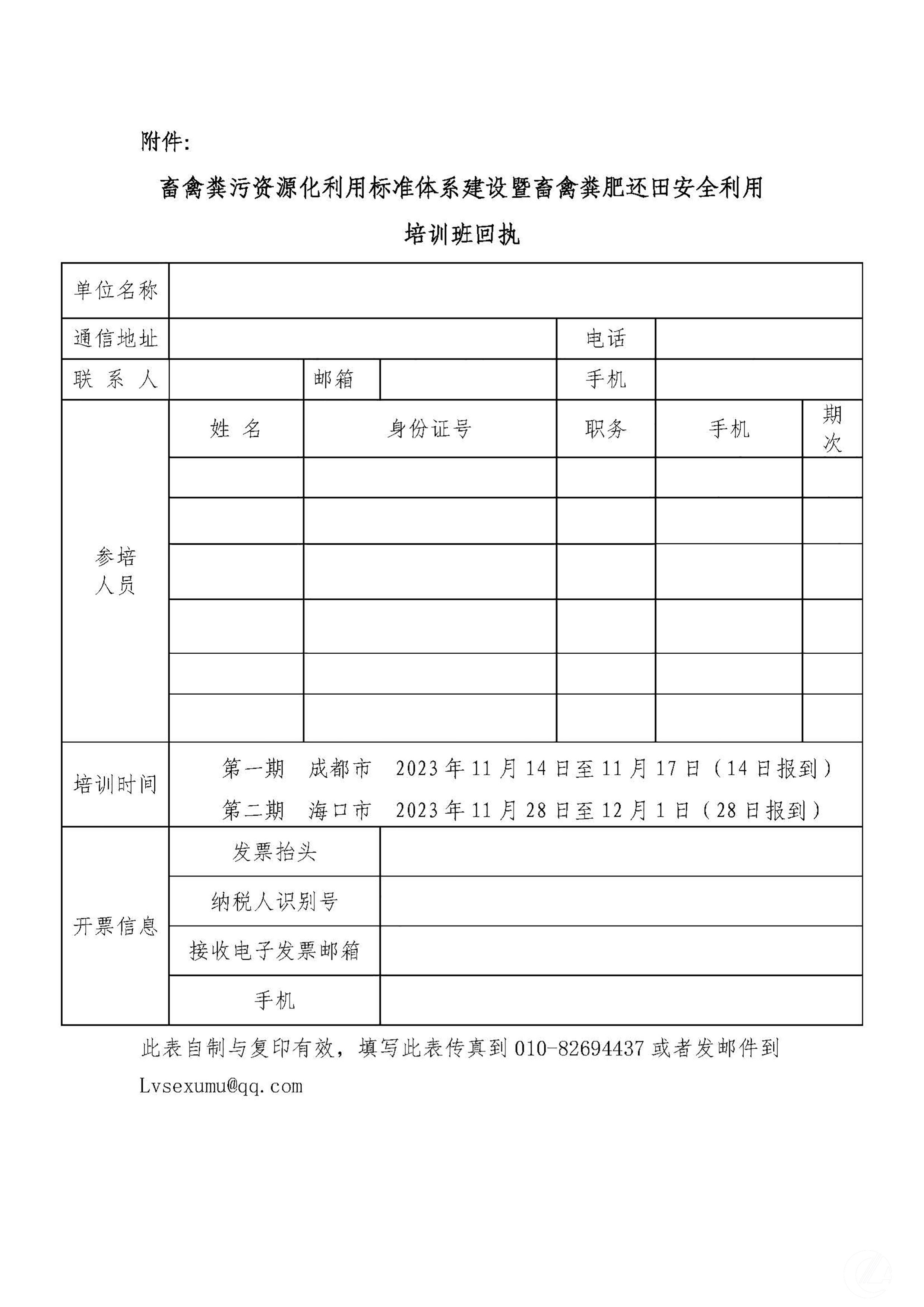 关于举办畜禽粪污资源化利用标准体系建设暨畜禽粪肥还田安全利用培训班的通知